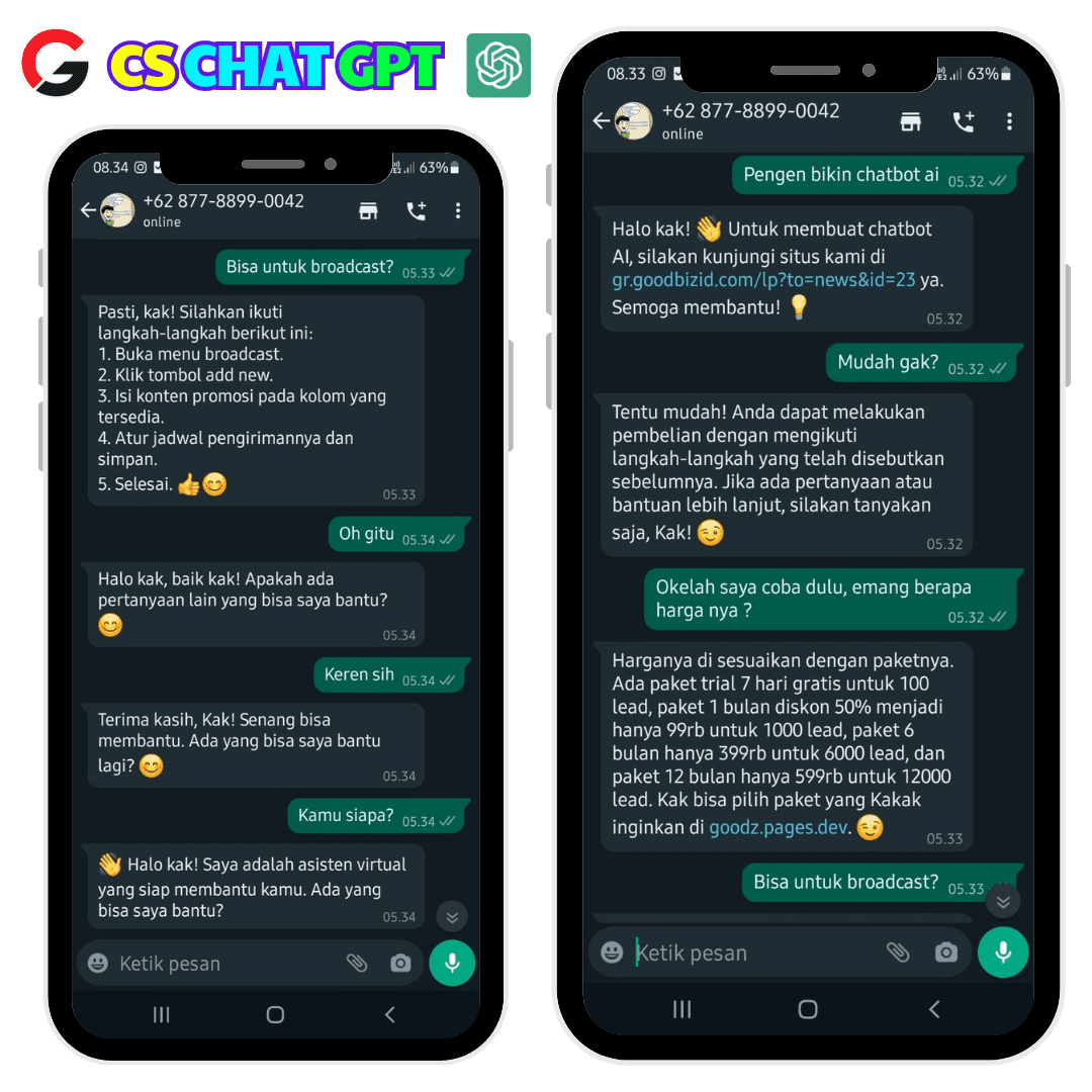 Pelayanan ke customer lebih natural, smooth dan seperti selayaknya manusia nyata sehingga pelanggan tidak merasa di layani oleh bot. Chatbot GPT mampu menjawab tanpa harus sesuai dengan keyword manual, otak pintar chat gpt akan mempelajari dan menjawab sesuai dengan bisnis dan produk anda. Chatbot GPT teknologi modern dan masa depan sebagai asisten pribadi yang bekerja 24 jam untuk melayani pelanggan anda